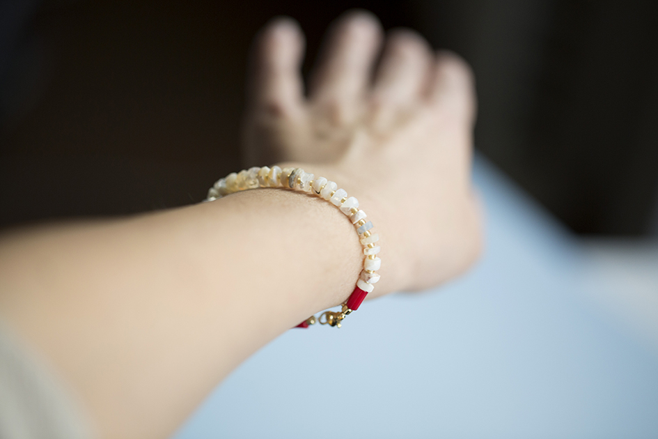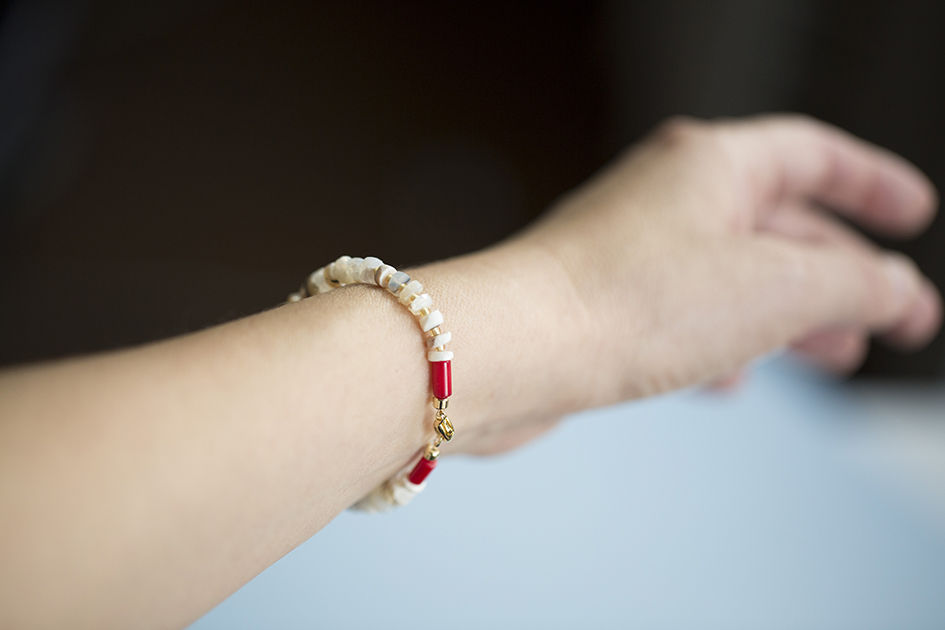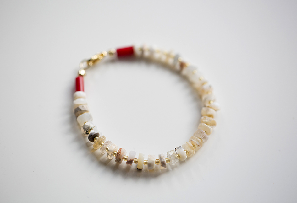 Браслет из опала с кораллом белый